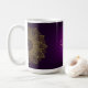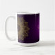Mandala or classique et tendance sur un arrière - plan violet, tasse à café monogrammée.