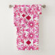 Serviette sertie dans un mandala motif en douze points dans les tons rose pâle à rose chaud avec marron, bordeaux et blanc