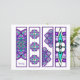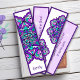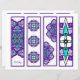 Cartes mandala violettes et turquoises dessinées à la main avec une citation inspirante au dos en rapport avec la lecture.