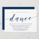 Thème bleu marine élégant et moderne, carte d'invitation pour une cérémonie de mariage intime (Manger, Boire et Danser). C'est parfait pour votre célébration décontractée au bord d'un lac.