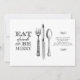 Manger, boire et être joyeux | Invitation sur fond blanc