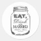 Mangez boire et être marié mason jarre autocollants de mariage / sceaux. design vintage et chic pour do-it-yourself jardin d'été grange mariage / douche nuptiale mignonne. Joli design avec typographie rustique en verre. Couleur arrière - plan personnalisable. Personnalisable avec le nom ou monogramme de la mariée et du marié plus la date du mariage. Pratique pour le mariage merci les faveurs et les scelleurs d'enveloppe. Disponible en petite et grande taille.