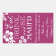 Ce étiquette de vin de mariage de destination de Maui Hawaii dit "Mange, Bois et Be Maui'd" sur le devant. C'est un tour sur le populaire "Mangez, Buvez et Soyez Mariés" ou "Mangez, Buvez et Soyez Joyeux". Le design est composé d'un arrière - plan prune violet avec un filigrane tropical fleuri. L'hibiscus hawaïen blanc et les fleurs tropicales de plage mettent l'accent sur le libellé. Personnalisez ces étiquettes avec votre message, le nom des couples et la date du mariage. Ces étiquettes de vin font de grands faveurs de conservation. Si vous avez besoin d'aide sur la personnalisation ou si vous voulez un jeu de couleurs que vous ne voyez pas dans ma boutique, envoyez-moi simplement un message avec votre demande. J'ai aussi un étiquette plus petit pour les flacons de 375ml de demi taille.