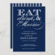 Cette invitation à dîner de répétition classe comporte l'expression "Mange, bois, et sois marié" en caractères gras.