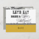 Des polices élégantes et amusantes annoncent le message, "Mangeons, buvons et nous marions !" sur une carte postale délicieuse et fantaisiste, Maid of Honor invitation. Dans une palette de couleurs propres, croustillantes, dorées, grises, noires et blanches, c'est le meilleur de vintage avec une touche moderne. Customisez facilement vos informations rsvp au verso.