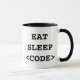 Mangez la tasse de café de code de sommeil pour des programmeurs. Idée mignonne de cadeau pour les lotisseurs ringards et le geeks d'Internet. Conception Geeky des textes d'humour. Faites votre propre parodie drôle.