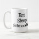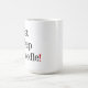 Tasse blanche avec le texte noir et un point d'exclamation rouge