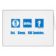 Parodie drôle des plaques de rue ou des signes de sécurité que notre bleu mangent, dorment, tuent des zombis les signes comportent même un zombi staggering avec sa moitié principale enlevée à l'air comprimé. Soyez prêt pour l'apocolypse de zombi avec cette conception morte de marche d'horreur de cool !