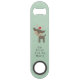 Un ouvre-bouteille mignon et festif à l'ambiance minimaliste hipster. Illustration de charme d'un cerf brun en bois portant un chapeau de santa rouge - style hipster. Placez-vous sur un arrière - plan vert rétro. Texte dit manger boire et être joyeux dans une police simple.
