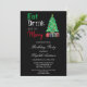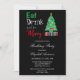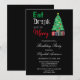 Mangez, buvez et soyez joyeux invitation d'anniversaire de Noël avec un arbre de Noël et des cadeaux