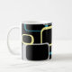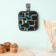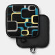 Vous êtes un fan de motifs d'inspiration rétro ? Ce porte-pot a un motif carré rétro fait de motifs gris, bleus et jaunes sur un arrière - plan noir.