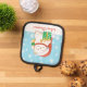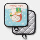 Chat blanc souriant dans un casquette de Noël rouge traditionnel tenant un grand cadeau emballé souhaite à chacun un très joyeux Noël ! Dans sa patte gauche, le chat tient haut une cloche dorée avec un arc vert.