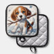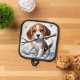 Un mignon chiot beagle avec une expression ludique tenant un bâton en terrain enneigé. Capture la joie et l'innocence des animaux de compagnie et le plaisir hivernal, avec une atmosphère de vacances chaleureuse.