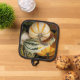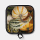 Gérez en toute sécurité les plateaux de cuisson, les feuilles de biscuits et les boîtes de muffin du four avec ce porte-pot avec garniture noire qui comprend une image photo de vie morte de différentes couleurs et variétés de citrouilles et de courge. Parfait pour la saison d'automne, Halloween et Thanksgiving ! Sélectionnez le style de support de votre porte-pot.