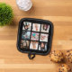 Créez votre propre photographe. Cet accessoire de cuisine est prêt à être customisé avec neuf de vos propres photos. Les images en forme de carré sont positionnées contre un arrière - plan noir.
