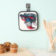 Illustration fantaisiste d'un gnome gai chevauchant une tondeuse à gazon rouge, portant des fleurs. Le design animé présente des couleurs vives et une atmosphère ludique.