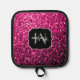 La fausse parties scintillant rose chaud scintille le Pot Holder. Monogramme Personnalisez avec votre initiale et votre nom personnalisés. De belles parties scintillant d'imitation brillantes, girly glamour, scintillent. Photo de scintilles, pas de vraie parties scintillant ! Faux scintille ! Pas de parties scintillant désordonnée au toucher !