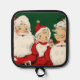 Une ancienne famille vintage santa claus rétro d'une vieille carte de noël, avec Père Noël, Mme Claus et petits claus bébé, parfait pour des vacances rétro amusantes.