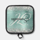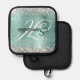 Créez vos propres porte-carré monogramme personnalisés. Fille fausse parties scintillant argent brillant sur une fausse feuille de style métallique turquoise turquoise pâle. Customisez les styles de police pour créer votre propre design pour sa célébration spéciale.