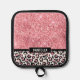 L'Empreinte de léopard Parties scintillant rose Shimmer Personnalisé Pot Holders dispose d'une élégante parties scintillant rose avec un motif empreinte de léopard rose et noir shimmer avec votre nom personnalisé au centre. Personnalisez en modifiant le texte dans les zones de texte. Conçu pour vous par ©Evco Studio www.zazzle.com/store/evcostudio