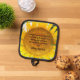Gérez en toute sécurité les plateaux de cuisson, les feuilles de biscuits et les boîtes de muffin du four avec ce porte-pot avec garniture noire qui présente l'image d'une fleur de tournesol jaune brillante ainsi que les mots de la Prière de sérénité inspirante imprimé en noir, script stylisé. Sélectionnez le style de support de votre porte-pot. Fait un grand cadeau pour la cuisine!