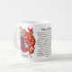 Crête de famille de Hutchinson comprenant l'histoire et la signification du nom de Hutchinson sur une tasse en céramique. Ce manteau des bras peut être utilisé sur tous les produits de tasse et de stein de Zazzle. Pour plus d'information ou avec vos commentaires envoyez-nous chez heraldry505@gmail.com