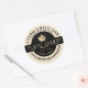 Personnalisez ce étiquette au sirop d'érable avec le nom commercial, l'emplacement, la qualité et le volume (liste incluse des conversions américaines et métriques pour les tailles populaires). Érable métallique central en cercle noir. Nom de l'état dans le texte incurvé près du bas du étiquette. Arrière - plan d'ivoire.