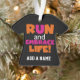 Courez et embrassez le T-shirts des textes de la vie, les sweat - shirts à capuche, le magnet, les mousepads, les cartes, les autocollants, les porte - clés, les boutons, les plaques à papier et les serviettes de magnet et, les sacs de cadeau, les bidons de sucrerie, les montres, et beaucoup d'autres articles avec une conception rose et orange lumineuse. Ces produits courants de thème font de grands cadeaux pour n'importe qui qui court pour l'amusement, court la voie, les marathons, demi des marathons, 10Ks, ou le 5Ks !