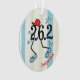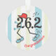Customisez le texte sur l'avant et le dos courant le chiffre de 26,2 bâtons souvenir d'ornement de marathoner de caractère pour ces caractère mignon, drôle, coloré avec un casquette rouge et chaussures bleues ! Cadeaux drôles de marathon pour les personnes de sports qui courent de longues distances ou instructeurs ou entraîneurs courants. L'arrière - plan est un bleu-clair et le motif rayé jaune pour accentuer les sports figure.