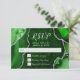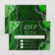Complétez votre papeterie d'événement avec cette élégante carte RSVP dotée d'un design en marbre d'agate verte rehaussé de détails luxueux en argent. Le fond audacieux inspiré d'un géode crée une apparence dramatique et sophistiquée, parfaite pour les mariages, les anniversaires, les célébrations officielles ou les événements du soir glamour. Conçue avec des sections de réponse claires, cette carte RSVP permet aux invités de confirmer facilement leur présence, d'indiquer le nombre de participants et de répondre avec acceptation ou regrets. La typographie moderne et épurée garde les détails faciles à lire tout en complétant la riche texture de l'agate. Personnalisez facilement tous les textes pour les adapter à votre événement et coordonnez-les magnifiquement avec la papeterie assortie.