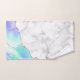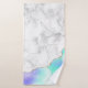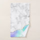 Le marbre blanc élégant se marie à un agate pastel aux couleurs de l'extrémité cool du spectre, dont le violet lavande, le vert de mer et le bleu, paré de parties scintillant faux or.