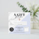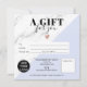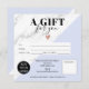 Motif moderne chic en marbre noir et blanc et éditable pastel bleu couleur bloc simple cadeau carré certificat, ajoutez votre logo, avec un coeur d'or rose. Bon cadeau d'anniversaire ou de Noël idéal.