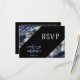 Carte de réponse de mariage. Avec une réponse de style mariage moderne sur un marbre bleu foncé et argent. ⭐Ce produit est 100% personnalisable. Les graphiques et/ou le texte peuvent être ajoutés, supprimés, déplacés, redimensionnés, modifiés, pivotés, etc... 99% de mes conceptions dans ma boutique sont réalisées en couches. Cela vous permet de redimensionner et de déplacer facilement les graphiques et le texte pour qu'ils s'adaptent parfaitement à chaque produit. 📌 (Veuillez vous assurer de redimensionner, modifier, ajouter, supprimer ou déplacer tout graphique ou texte si nécessaire avant de commander) Vous pouvez également "TRANFÉRER LE DESIGN" sur d'autres produits Zazzle et ajuster le design pour qu'il s'adapte à la plupart des produits Zazzle. (cliquez sur la zone de transfert ci-dessous) Certains des graphiques de texte ont des cases prêtes à remplir ou