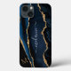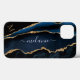 Marbre bleu marine Monogramme Nom coque iphone