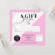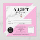 Motif moderne chic en marbre noir et blanc et candy modifiable couleur rose bloc simple cadeau carré certificat, ajoutez votre logo, avec un coeur d'or rose. Bon cadeau d'anniversaire ou de Noël idéal.