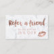 Référez-vous un ami avec cette carte moderne et élégante de référence de maquillage avec la typographie moderne de brosse de style de lettrage de main dans la feuille d'or rose de faux sur un arrière - plan de marbre blanc à la mode et élégant avec des lèvres.