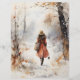 Papier recto verso avec aquarelle d'une femme marchant dans un bois d'hiver pour vous aider à créer vos projets d'artisanat saisonnier. Parfait pour tous les types de papercraft, du scrapbooking à la journalisation des déchets.