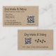 Carte de visite personnalisé pour les promeneurs à chiens avec une fausse texture de papier des deux côtés! Essayez-le pour voir à quoi il ressemble ! Il vous suffit d'ajouter vos coordonnées et URL personnalisées à votre site Web, aux médias sociaux et/ou à votre liste de prix. Vous avez la possibilité d'ajouter une ou deux URL. Il y a un code QR à l'avant, et à l'arrière avec une zone de texte et de petits empreintes de pattes. Plusieurs options de cartes et styles de papier sont disponibles.