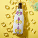 Ce glacière de bouteille a un design Mardi Gras de fleur de lis bordée à travers le design avec différents modèles dans eux.