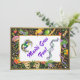Le champagne de 5" x 7" brille l'invitation avec l'image d'un cadre noir orné de masques colorés en plumes, de casquettes de jester, de ballons, de perles et de notes de musique. Back a la même image et espace blanc pour les détails de votre fête. Texte personnalisable Voir enveloppe correspondante. Voir toute la collection Mardi Gras Invitation dans les INVITATIONS | Section Invitations.
