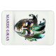Cet aimant flexible est affiché dans une impression festive de masque Mardi Gras. Image stock freepik.com