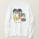 T-shirt à manches longues blanc avec l'image de quatre masques colorés Mardi Gras ornés de plumes, de paillettes et de parties scintillant vives. Texte facultatif. Voir toute la collection Mardi Gras Apparel dans les TOUCHES SPÉCIALES | Section Favoris.
