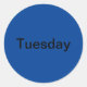 Ces autocollants du jour de la semaine portent le mot Mardi, sur les autocollants bleus. Le texte peut facilement être modifié sur le formulaire modèle. La couleur arrière - plan peut être customisée à n'importe quelle couleur de votre sélection. Merci pour faire du shopping CherylsArt sur Zazzle.