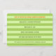 Les couleurs vives du coucher de soleil mettent en valeur ce design moderne, parfait pour les rassemblements estivaux, les 21 ans, les enterrements de vie de jeune fille ou les fêtes. Le design présente une illustration graphique d'un verre à margarita rempli d'un délicieux cocktail et garni d'une tranche de citron vert. Le fond est un dégradé amusant qui passe de l'aqua vif à l'orange coucher de soleil. Pour plus de plaisir, l'illustration comporte les mots « Squeeze me baby one more lime » dans des nuances de vert citron vert. Personnalisez l'invitation avec les informations de votre événement en utilisant les modèles faciles fournis. Le verso comporte davantage de modèles de texte pour ajouter plus de détails sur l'événement et est orné d'un motif rayé large dans des nuances de vert citron vert.