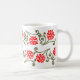 Une tasse à café élégante avec une gravure vintage restaurée de marguerites et d'éléments de curling en rouge et or.