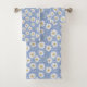 Des marguerites blanches foncées aux centres jaunes sur un arrière - plan bleu poussiéreux donnent à cette serviette de bain un look boho doux que vous aimerez. Un peu de pays, et très design !