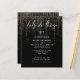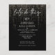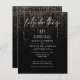 Les invitations de mariage abordables n'ont pas besoin d'être ennuyeux - Gras poitrine de champagne scintillante en bas de la page, dans la calligraphie manuscrite est "faisons ça" - initiales du couple en haut - le reste du texte est simple et propre - le tout sur un arrière - plan noir. Élégante papeterie de mariage.