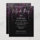 Les invitations de mariage abordables n'ont pas besoin d'être ennuyeux - Bold edgy magenta scintillant guirlande scintillante en bas de la page, dans la calligraphie manuscrite est "faisons ça" - initiales du couple en haut - le reste du texte est simple et propre - le tout sur un arrière - plan noir. Élégante papeterie de mariage.