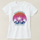 T-shirts de plage assortis et sympas pour votre cortège de mariée à porter lors d'une soirée d'enterrement de vie de jeune fille pour un mariage de destination insulaire. Caractéristiques de beaux palmiers devant un beau coucher de soleil rose sur la plage. Parfaits t-shirts personnalisés tropicaux pour votre voyage d'été au bord de la mer.
