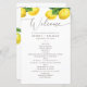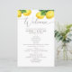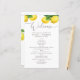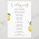 Célébrez votre jour spécial avec cette carte de programme de mariage aquarelle au citron recto-verso. Le recto présente les détails de votre cérémonie, tandis que le verso met en valeur votre cortège de mariage, le tout encadré de citrons peints à la main et de feuilles vertes luxuriantes. Conçue dans des tons frais de jaune et de vert aquarelle, elle apporte une touche lumineuse et joyeuse à votre collection de papeterie. Parfaite pour les mariages d'été, les célébrations italiennes ou méditerranéennes, les mariages dans les vignobles ou les cérémonies en plein air dans un jardin. Cette carte de programme personnalisée guide non seulement vos invités tout au long de la journée, mais sert également de souvenir de votre célébration.